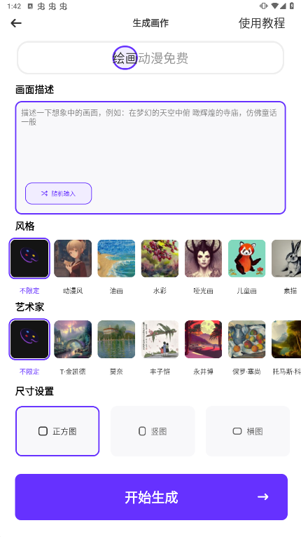 从供给的气概当选择一个,梦幻AI画家的界面很是曲不雅。同时,便利你进行编纂。你能够通过调整画布尺寸、颜色和细节等参数,